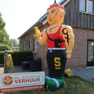 Abraham Aso van 3,5 meter hoog! Deze opblaasbare Abraham Aso is erg leuk in de tuin bij de 50-jarige of bij de feest locatie. De feestpop is verpakt in een makkelijk hanteerbare transporttas en is inclusief kleine blower. Deze blower is waterdicht en werkt op normale stroomvoorziening (dus geen krachtstroom nodig). De blower en het opblaasfiguur zijn in iedere auto gemakkelijk te vervoeren. Opzetten dient met 2 personen te gebeuren en is circa 2 minuten werk.