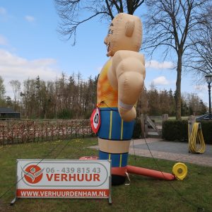 Abraham Sportief van 3,5 meter hoog! Deze opblaasbare Abraham Sportief is erg leuk in de tuin bij de 50-jarige of bij de feest locatie. De feestpop is verpakt in een makkelijk hanteerbare transporttas en is inclusief kleine blower. Deze blower is waterdicht en werkt op normale stroomvoorziening (dus geen krachtstroom nodig). De blower en het opblaasfiguur zijn in iedere auto gemakkelijk te vervoeren. Opzetten dient met 2 personen te gebeuren en is circa 2 minuten werk.
