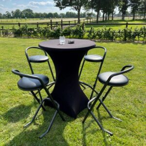 Wil je de gasten de optie geven om te gaan zitten. Kies dan voor deze stapelbare barkruk en te gebruiken voor veel doeleinden privé en zakelijk. Gemaakt van hoge kwaliteit staal en een zitting in PU Leder. Ze zijn dan ook geschikt voor binnen en buiten gebruik. Gemakkelijk te vervoeren met steekwagen en de barkrukken zijn stapelbaar tot 10 stuks. . De Barkrukken zijn te gebruiken voor binnen en buiten en zijn ideaal voor allerlei soorten feesten. Je kunt ze moeiteloos aanschuiven aan onze of statafels, waardoor je al snel gezellige zithoekjes kunt creëren in de feestruimte of de partytent.