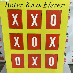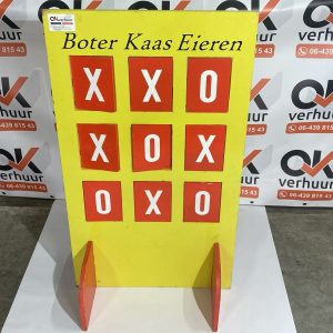 Bij OK Verhuur kunt u het klassieke Oud-Hollandse spel boter-kaas-en-eieren huren! Dit eenvoudige maar spannende spel is geschikt voor alle leeftijden en zorgt voor veel plezier en competitie. Probeer als eerste drie op een rij te krijgen en versla je tegenstander. Perfect voor verjaardagen, familiedagen, en bedrijfsuitjes. Huur boter-kaas-en-eieren vandaag nog en voeg een stukje tijdloze Nederlandse gezelligheid toe aan uw evenement!