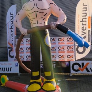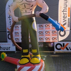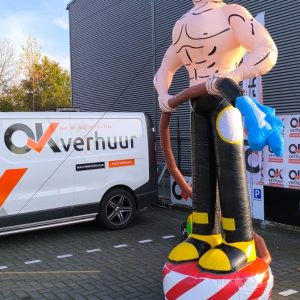 Deze Abraham Brandweerman van 4 meter hoog! Deze opblaasbare Abraham Brandweerman is erg leuk in de tuin bij de 50-jarige of bij de feest locatie. De feestpop is verpakt in een makkelijk hanteerbare transporttas en is inclusief kleine blower. Deze blower is waterdicht en werkt op normale stroomvoorziening (dus geen krachtstroom nodig). De blower en het opblaasfiguur zijn in iedere auto gemakkelijk te vervoeren. Opzetten dient met 2 personen te gebeuren en is circa 2 minuten werk.