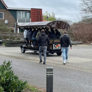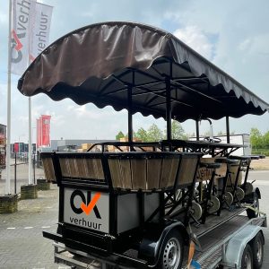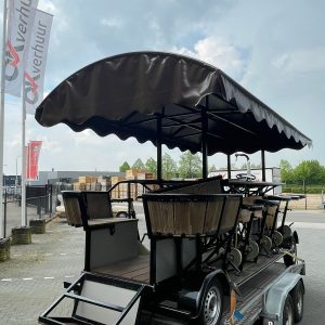 Op zoek naar een leuke groepsactiviteit? Het Bruincafé op wielen (ook wel trapkroeg/bierfiets genoemd) is het gezelligste Café op wielen in Twente, Overijssel! en is te huur bij verhuur Den Ham, deze bierfiets op wielen kan max. 17 personen verwelkomen. Voorzien van een biertap , waarmee u gezellig met z’n allen kunt fietsen onder het genot van een (aantal) drankje(s). Het is een zeer leuke activiteit voor een vrijgezellenfeest, kampioenschap of ander feestje. Beleef de ludieke manier van fietsen ,gegarandeerd voor een dag vol hilarische momenten en gezelligheid!