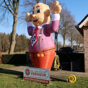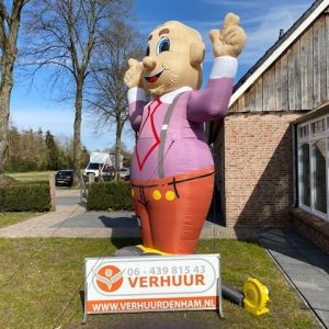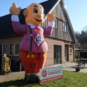 Feestende Abraham 4,0 meter hoog! Deze opblaasbare Feestende Abraham is erg leuk in de tuin bij de 50-jarige of bij de feest locatie. De feestpop is verpakt in een makkelijk hanteerbare transporttas en is inclusief kleine blower. Deze blower is waterdicht en werkt op normale stroomvoorziening (dus geen krachtstroom nodig). Het reserveren van een opblaasfiguur is gratis! De blower en het opblaasfiguur zijn in iedere auto gemakkelijk te vervoeren. Opzetten dient met 2 personen te gebeuren en is circa 2 minuten werk. Dit feestfiguur is niet alleen bij 50 jaar te huur, deze Feestende Abraham 4,0 meter is tevens inzetbaar voor vele andere leeftijden d.m.v. verwisselbare verkeersbordbanner