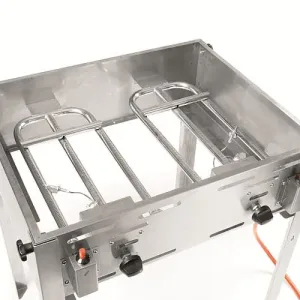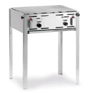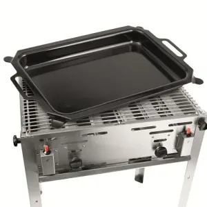 Deze luxe Gas barbecue Grill-Master zorgt voor een prettige barbecue waar u met een grote groep op elke gewenste locatie kunt bakken en rond de aanhang barbecue kunt staan. Frame gemaakt van roestvast staal. Met verchroomd rooster en geëmailleerde braadpan. Binnenmaat braadpan 590×480 mm. Elektronische ontsteking en thermokoppel.