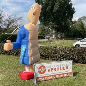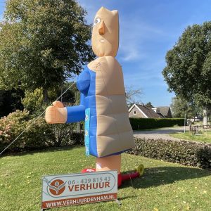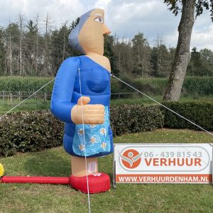 Halve Sarah van 3,5 meter hoog! Deze opblaasbare halve Sarah is erg leuk in de tuin bij de 25-jarige of bij de feest locatie. De feestpop is verpakt in een makkelijk hanteerbare transporttas en is inclusief kleine blower. Deze blower is waterdicht en werkt op normale stroomvoorziening (dus geen krachtstroom nodig). De blower en het opblaasfiguur zijn in iedere auto gemakkelijk te vervoeren. Opzetten dient met 2 personen te gebeuren en is circa 2 minuten werk.