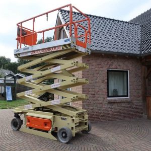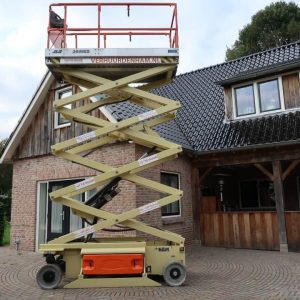JLG 2646 ES schaarhoogwerker op accu met een werkhoogte van 10 meter, de machine weegt 2550 kg en is ideaal voor binnen/buiten gebruik. De hoogwerker heeft een omvang van 2.50 bij 1.17 meter, staat op non-marking banden en laat geen strepen achter op de ondergrond. Tevens heeft deze hoogwerker een uitschuifbaar werkplatform waarmee de werkbak met 1.27 meter verlengd kan worden. De capaciteit van de werkbak is 450 kg.