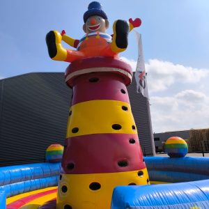 Deze opblaasbare klimtoren is een echte aanrader, De kinderen moeten zo snel mogelijk naar boven proberen te klimmen