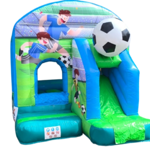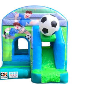Speciaal voor kinderen is er dit gave “Multifun Voetbal” springkussen met glijbaan. Deze compacte en lichtgewicht kussens zijn ideaal voor in tuinen, een oprit of zelfs binnen. Gemakkelijk te vervoeren en op te zetten. De “Multifun Voetbal” springkussen is overdekt, hebben een glijbaan en in het midden kun je lekker springen op het springvlak. De leuke animaties maken het helemaal af. Zo ga je een topdag tegemoet.
