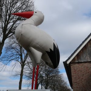 Deze opblaasbare ooievaar van 5 meter hoog! Deze opblaasbare Ooievaar met fles is erg leuk in de tuin bij de familie of bij de feest locatie. Het feestfiguur is verpakt in een makkelijk hanteerbare transporttas en is inclusief kleine blower. Deze blower is waterdicht en werkt op normale stroomvoorziening (dus geen krachtstroom nodig).