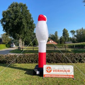 De blower en het opblaasfiguur zijn in iedere auto gemakkelijk te vervoeren. Opzetten dient met 2 personen te gebeuren en is circa 2 minuten werk.