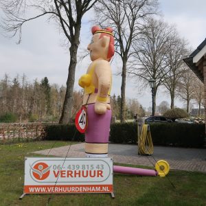 Sarah Sportief van 3,5 meter hoog! Deze opblaasbare Sarah Sportief is erg leuk in de tuin bij de 50-jarige of bij de feest locatie. De feestpop is verpakt in een makkelijk hanteerbare transporttas en is inclusief kleine blower. Deze blower is waterdicht en werkt op normale stroomvoorziening (dus geen krachtstroom nodig). De blower en het opblaasfiguur zijn in iedere auto gemakkelijk te vervoeren. Opzetten dient met 2 personen te gebeuren en is circa 2 minuten werk.