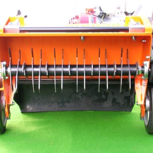 Speciaal ontwikkeld voor het verwijderen van mos, dood gras, sponzige viltlagen,… Met deze machine stimuleert U de wortelontwikkeling van nieuwe grassprietjes en wordt de zuurstof- & watertoevoer verbeterd. Daarenboven verbetert de weerstand tegen extreme droogte & langdurige hitte. Deze professionele verticuteermachine heeft een traploze in hoogte verstelbare instelling, zodat u makkelijk en zelf de werkdiepte kan bepalen. Deze verticuteermachine zorgt ervoor dat het vanzelf over het gazon rolt.